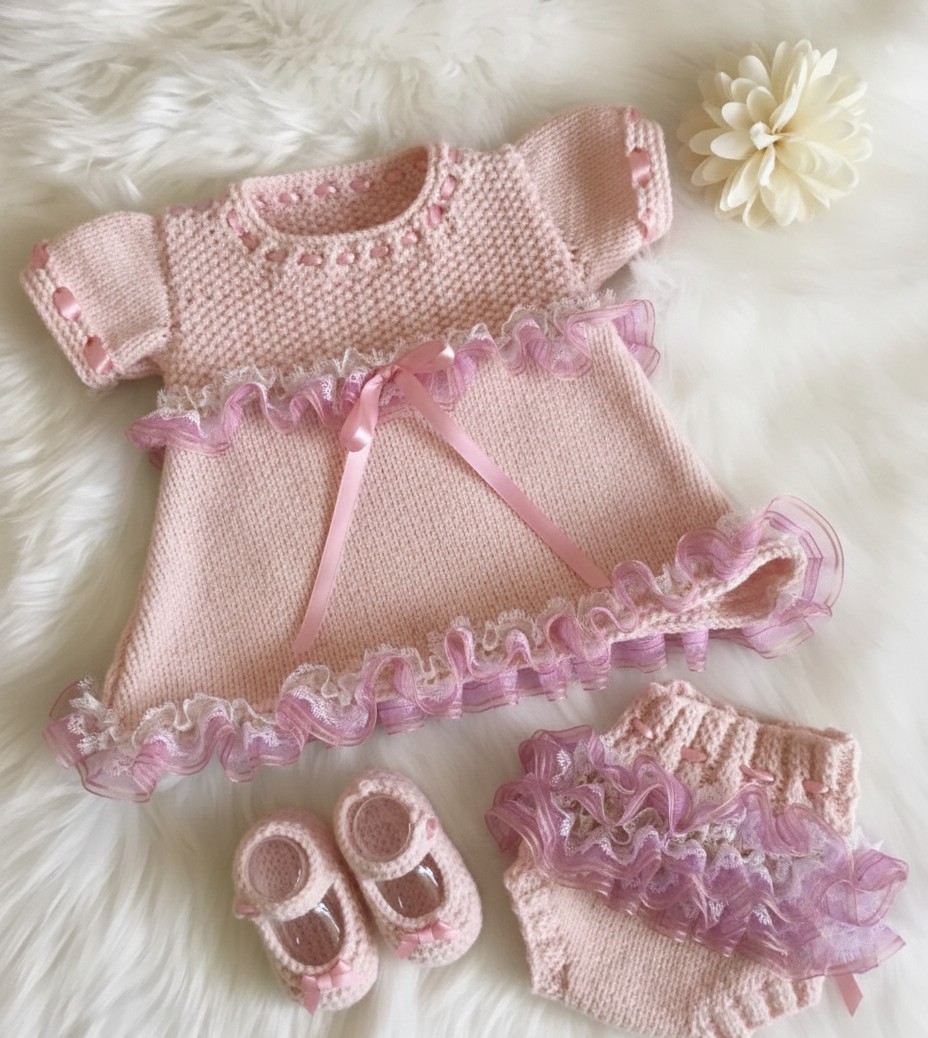 Lily is the latest completed addition to the Ribbon and Lace Collection. This little set is just so pretty and fresh. Lily is my friend Nicolas’ first granddaughter and brought so much joy to their family.