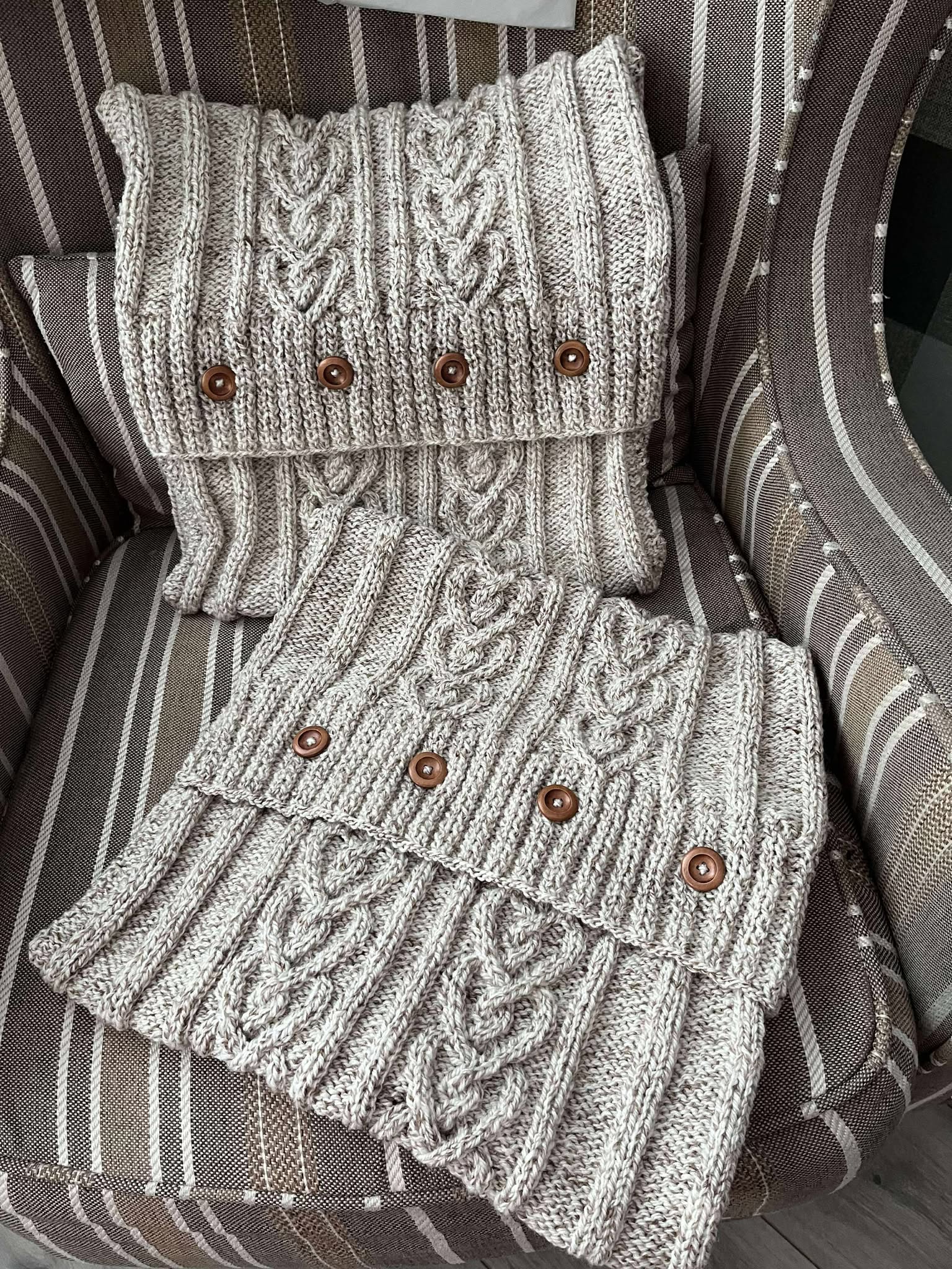 NANNA’S CUSHION – a cushion incorporating the timeless Mammy’s Love heart cable! There are three variations contained within this one knitting pattern to guarantee variety! Choose from one or two hearts and the added extra of ribbed sides!
