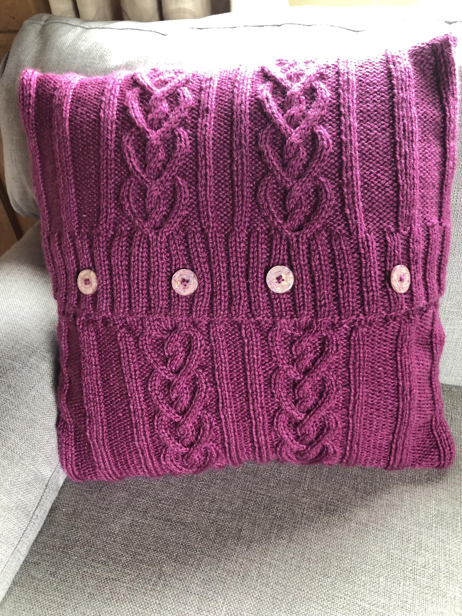 What a lovely pattern to knit. The single cable cushion is good choice if you are new to cabling. Mine takes pride of place on my sofa. Will soon be making more.